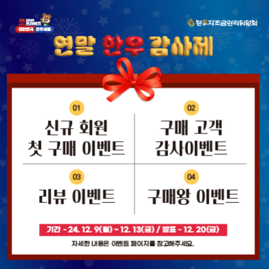 다가오는 연말, 한 해 동안 수고한 자신과 소중한 사람들에게 특별한 선물을 전하고 싶다면 2024 연말한우감사제를 놓치지 마세요!
