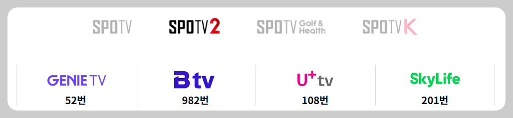 - 티비 회사별 채널 번호 안내(스포티비 -축구 / 스포티비2 -야구 등)
