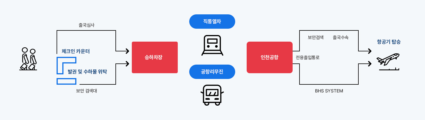💬 A2: 아닙니다. 서울역에서 출국심사까지 완료되므로 공항에서는 바로 보안검색 후 출국장으로 이동합니다.