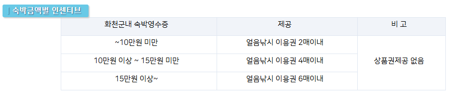 해당 영수증(카드영수증 또는 현금영수증) 또는 숙박확인증을 가지고 얼음낚시(현장/예약/밤) 접수처 방문