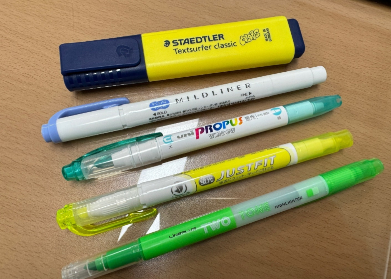 먼저 일반 볼펜류를 사용하시는 분은 잉크가 새어나오는 형태가 아니기에 어떤 형광펜과 써도 번지거나 하지 않습니다.