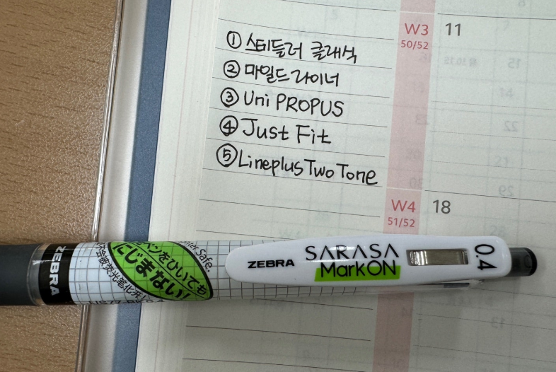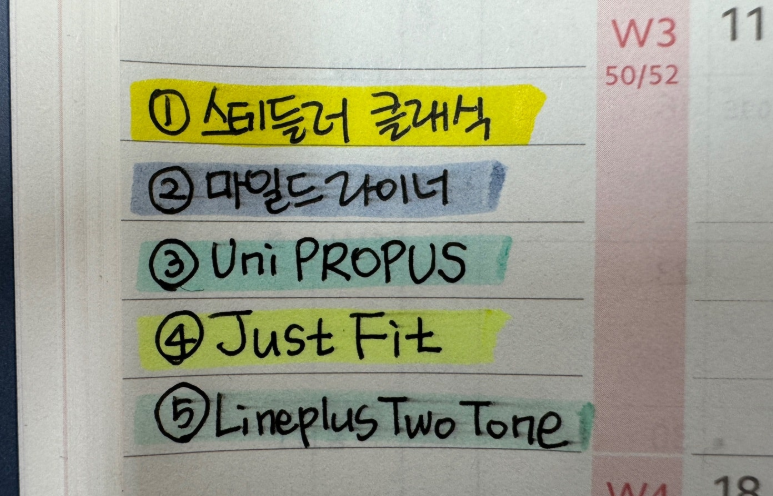 윈키아 플래너 다이어리 사용을 위한 꿀 조합 = 사라사 마크온 + 스태들러 형광펜 ^^