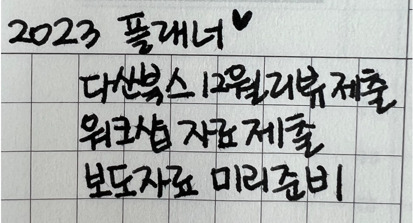 그래서 2023년도 구입을 했는데 종이가 바뀌었고 똑같은 펜과 형광펜을 써도 번지고 사용하는데 불편함을 느끼던 때