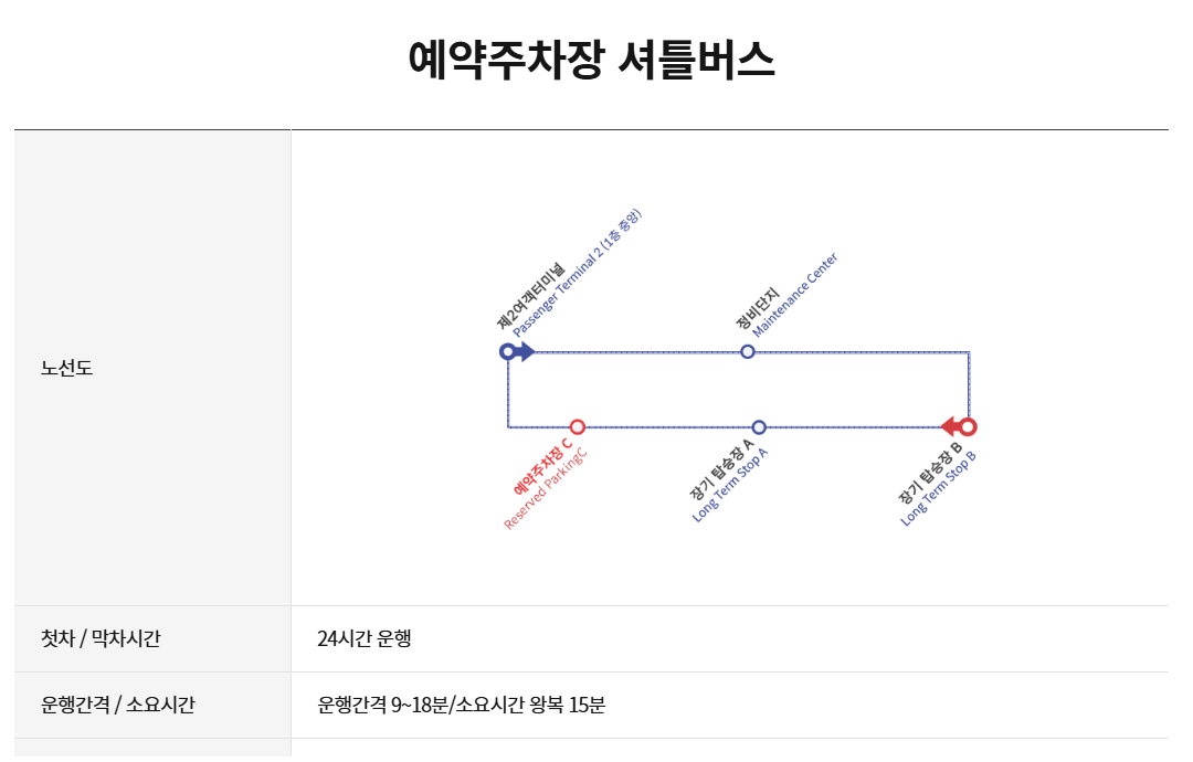 - 운영: 24시간 운영되며 셔틀버스는 약 5~10분 간격으로 운행.